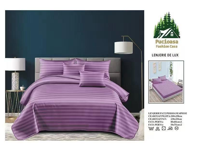Lenjerie PREMIUM damasc bumbac 6 piese - MOV